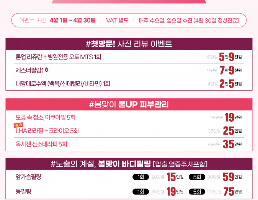 첫방문 평일 이벤트부터 블랙헤드 쏙쏙! 피부는 촉촉! 아쿠아필 패키지 이벤트 까지!